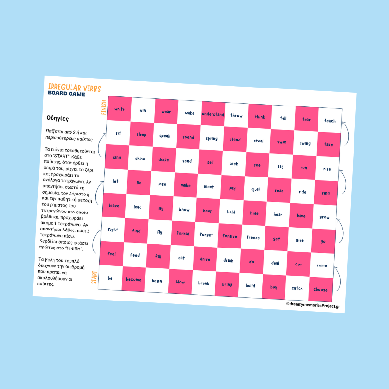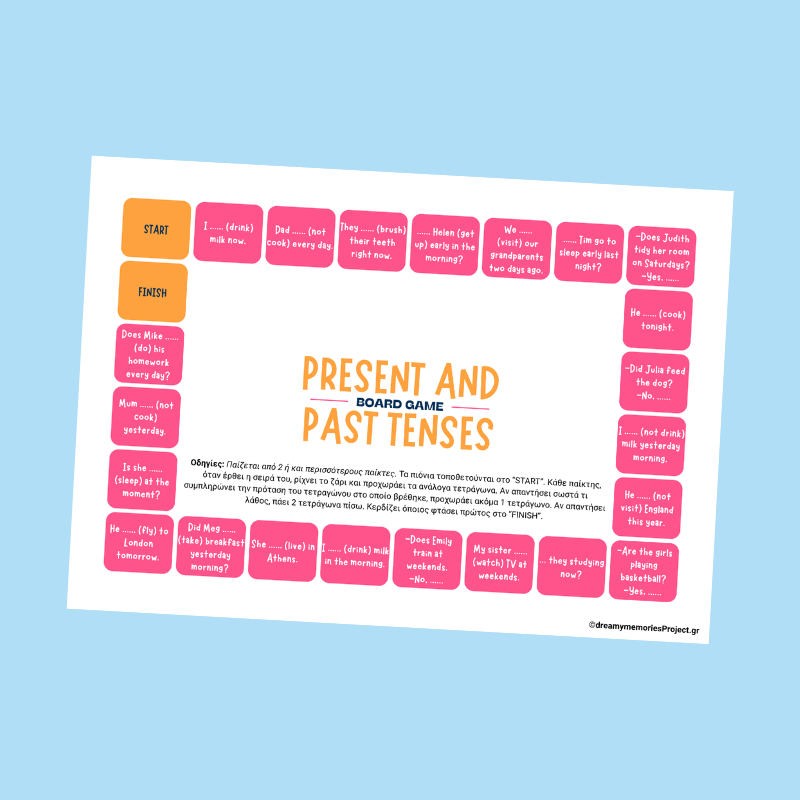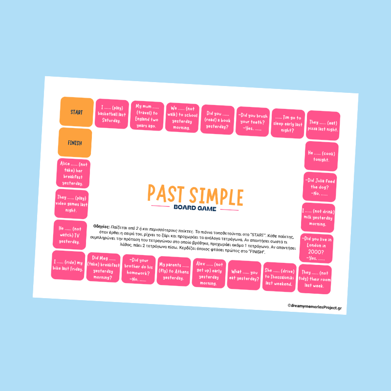 Επιτραπέζια παιχνίδια αγγλικών για παιδιά για εκμάθηση του Past Simple
