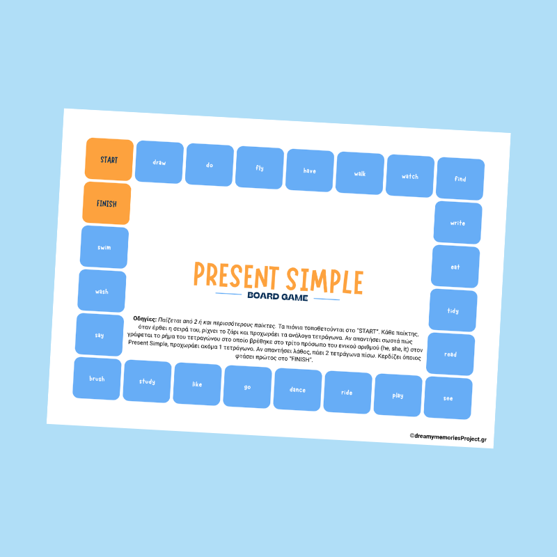 Επιτραπέζια παιχνίδια αγγλικών για παιδιά για εκμάθηση του Present Simple
