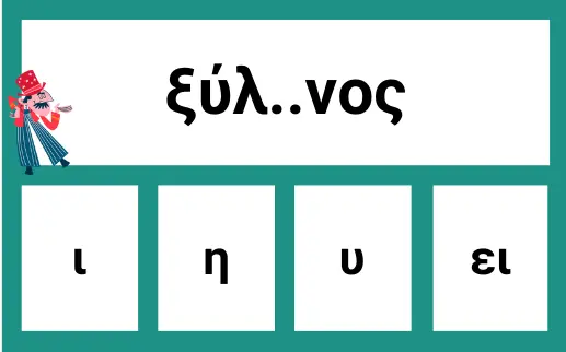 Το παιδί χρειάζεται να διαβάσει το επίθετο κάθε κάρτας. Στη συνέχεια, χρειάζεται να επιλέξει ποια από τις επιλογές που του δίνονται συμπληρώνει σωστά το κενό στο επίθετο.