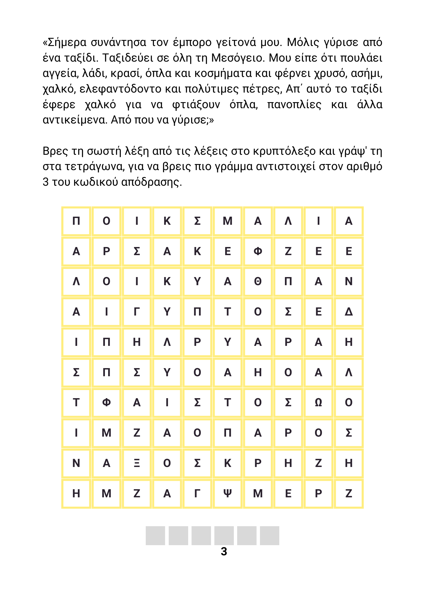 Βιβλίο απόδρασης με θέμα Μυκηναϊκός πολιτισμός Γ Δημοτικού