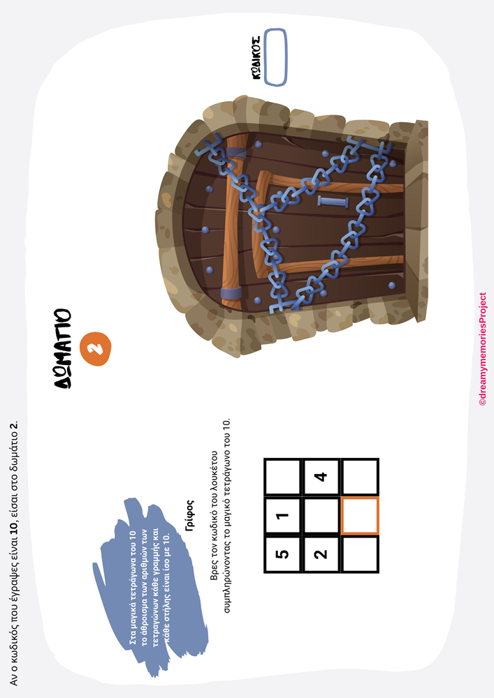 Απευθύνεται σε μαθητές της Α Δημοτικού και έχει τίτλο “Απόδραση από το κάστρο της μάγισσας”.