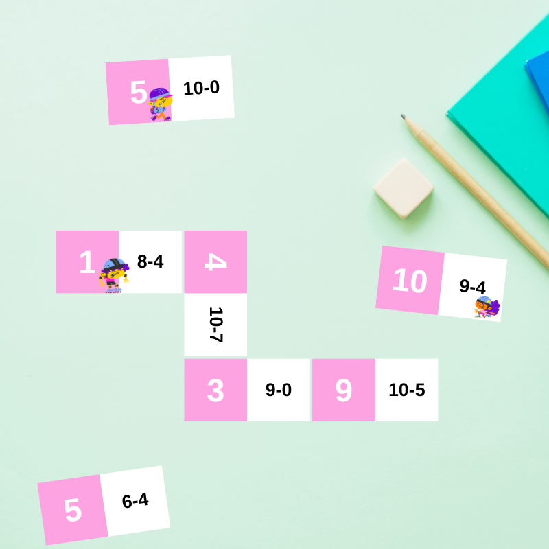 Αποτελείται από 30 κάρτες. Κάθε κάρτα έχει δύο μέρη. Το πρώτο μέρος της έχει έναν αριθμό από το 1 έως το 10. Το δεύτερο μέρος της έχει μία αφαίρεση με αποτέλεσμα έως το 10.