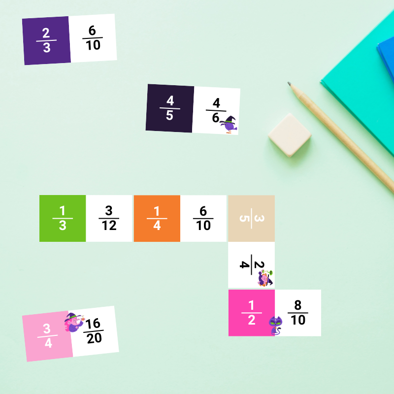 Με το Ισοδύναμα κλάσματα Γ Δημοτικού – Ντόμινο από τα παιχνίδια με κλάσματα Γ Δημοτικού του dreamymemoriesProject εξασκούμαι στη μετατροπή κλασμάτων σε ισοδύναμα παίζοντας!